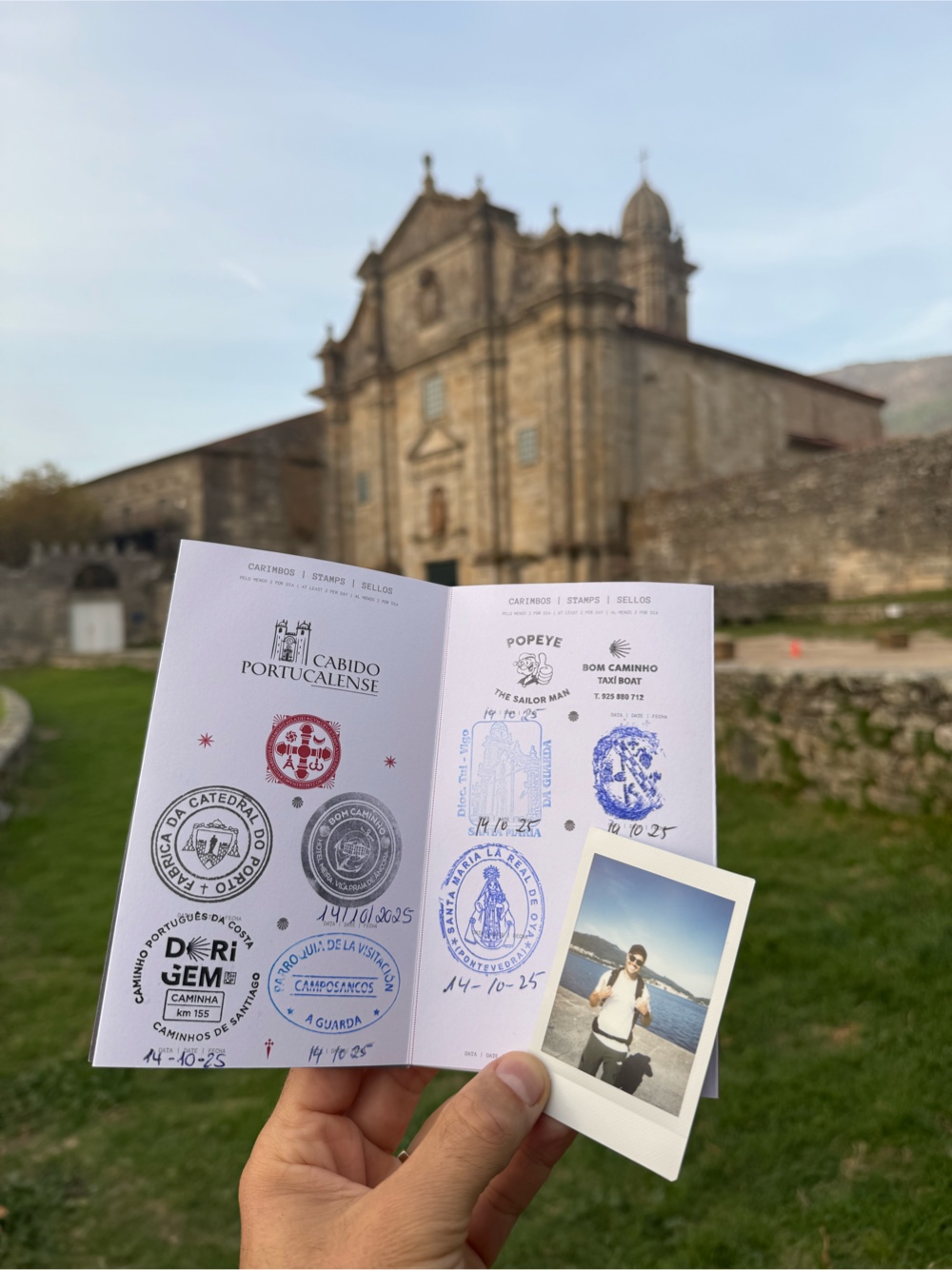 I left at 8:30 a.m., the sun already rising over the rugged coast. The signs were clear, the shoes comfortable, and the ocean air invigorating. In Caminha, I caught the last taxi-boat of the year to Spain - after today, crossings only run one hour each morning! The five-minute ride cost me an hour due to the time change, and soon people began greeting me with “buen camino.”