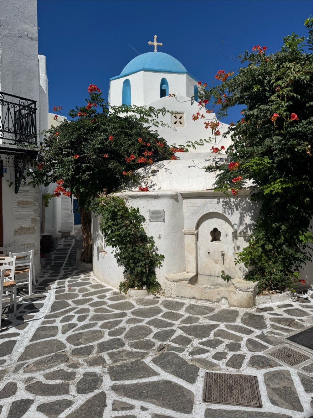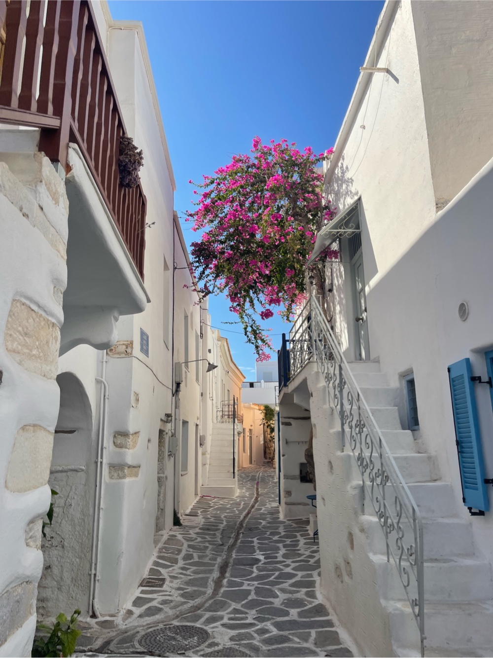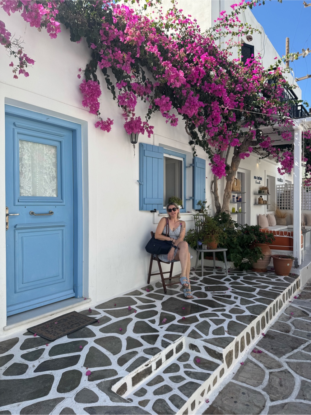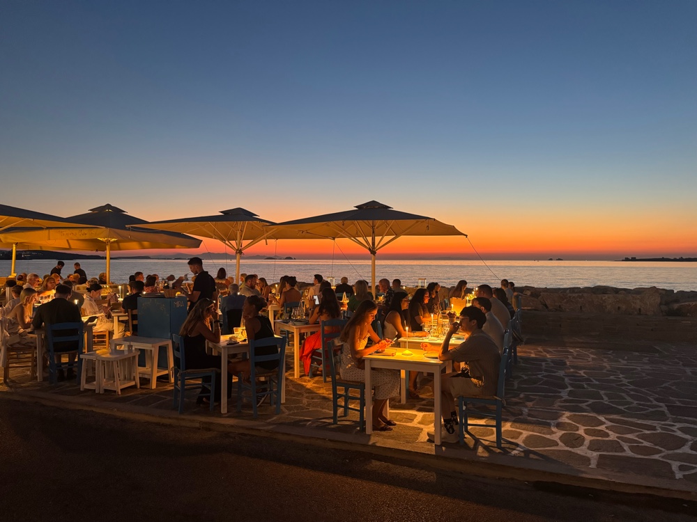 Paros welcomed us with postcard charm and mild madness. The first night was packed, but daytime revealed a calmer rhythm - whitewashed alleys, blue shutters, bursts of bougainvillea, and that timeless island vibe. While Didi worked, Seb camped out by the sea and went for a coastal trail run. Dinner by the waterfront with sunset views sealed the deal.