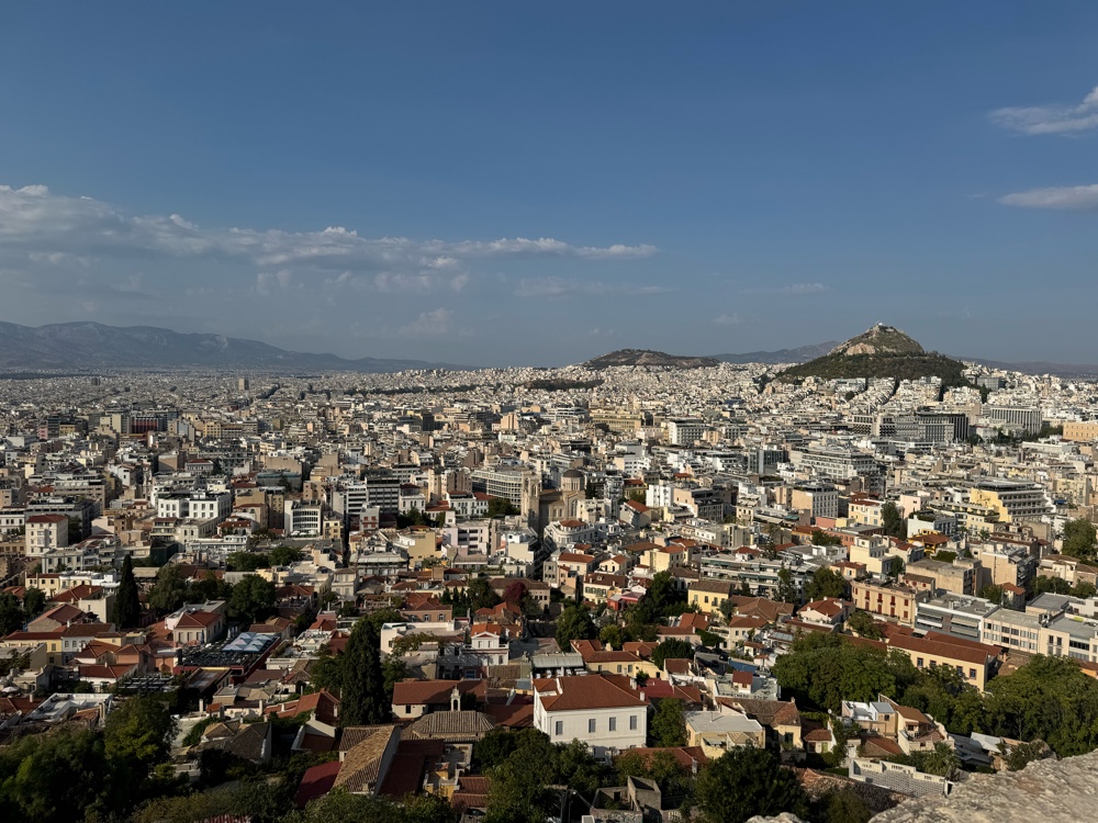 After a short night, we kicked off with our signature move: a free walking tour. Walter delivered a lively three-hour crash course through Athens’ compact historic center - myths, ruins, revolutions, and all. The 30°C sun was a welcome change from autumnal Amsterdam, if also a sweaty one. Lunch in a local taverna revived us before a quick nap (Seb) and IT troubleshooting (Didi). Later we climbed the Acropolis, soaked in views among the crowds, and ended the day with Greek dinner and an early night.