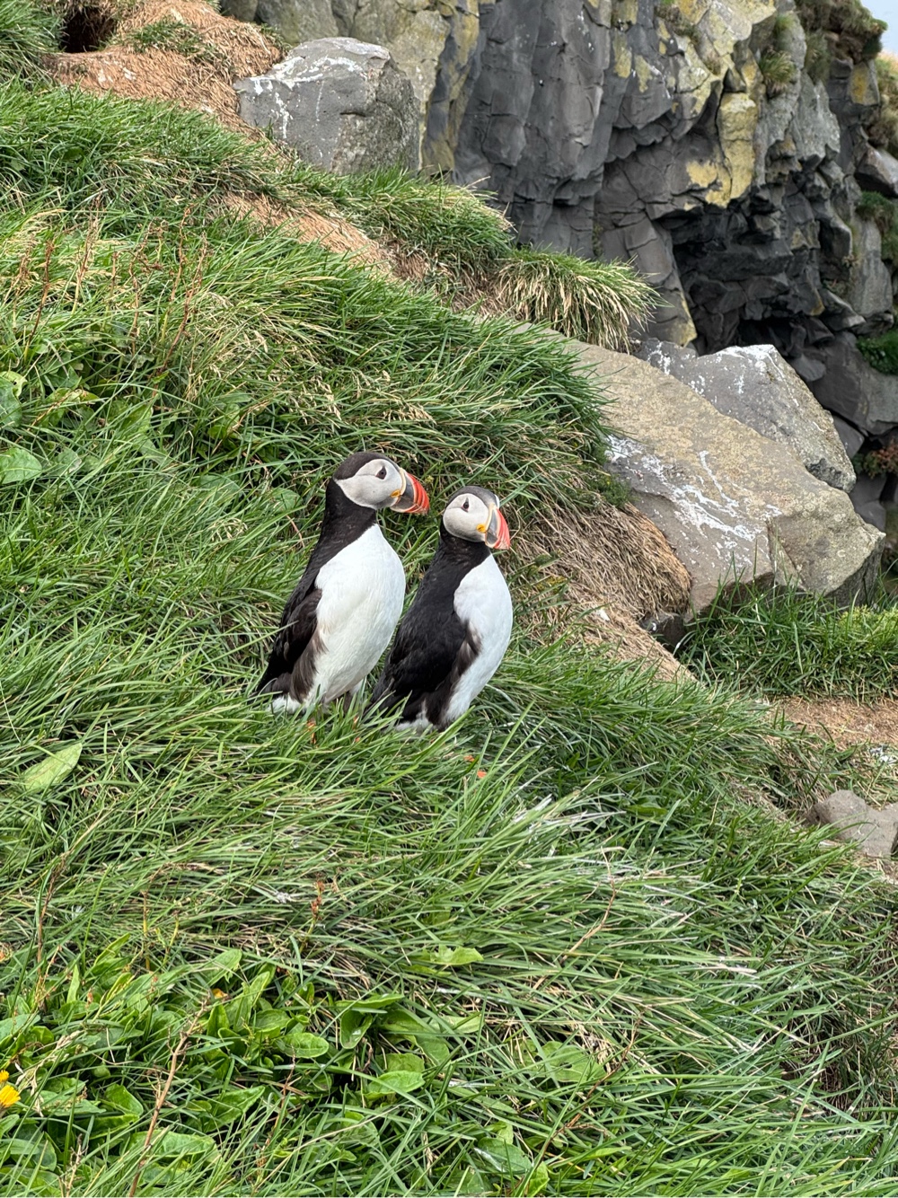 The next day: a waterfall marathon along Iceland’s southern coast! 😍 From Urridafoss to the famous Seljalandsfoss - where we walked behind the roaring curtain of water - to Skógafoss and the glacier lagoon of Sólheimajökull, the day was packed with drama. At Dyrhólaey cliffs we hit the jackpot, spotting puffins up close before continuing to Reynisfjara’s black beach with its surreal basalt columns. Crowds were heavier than I remembered from 2011, stretching the day longer than planned, but the scenery was just as breathtaking. We skipped the hot river hike, grabbed burgers, and rolled back to Reykjavík late and tired but happy.