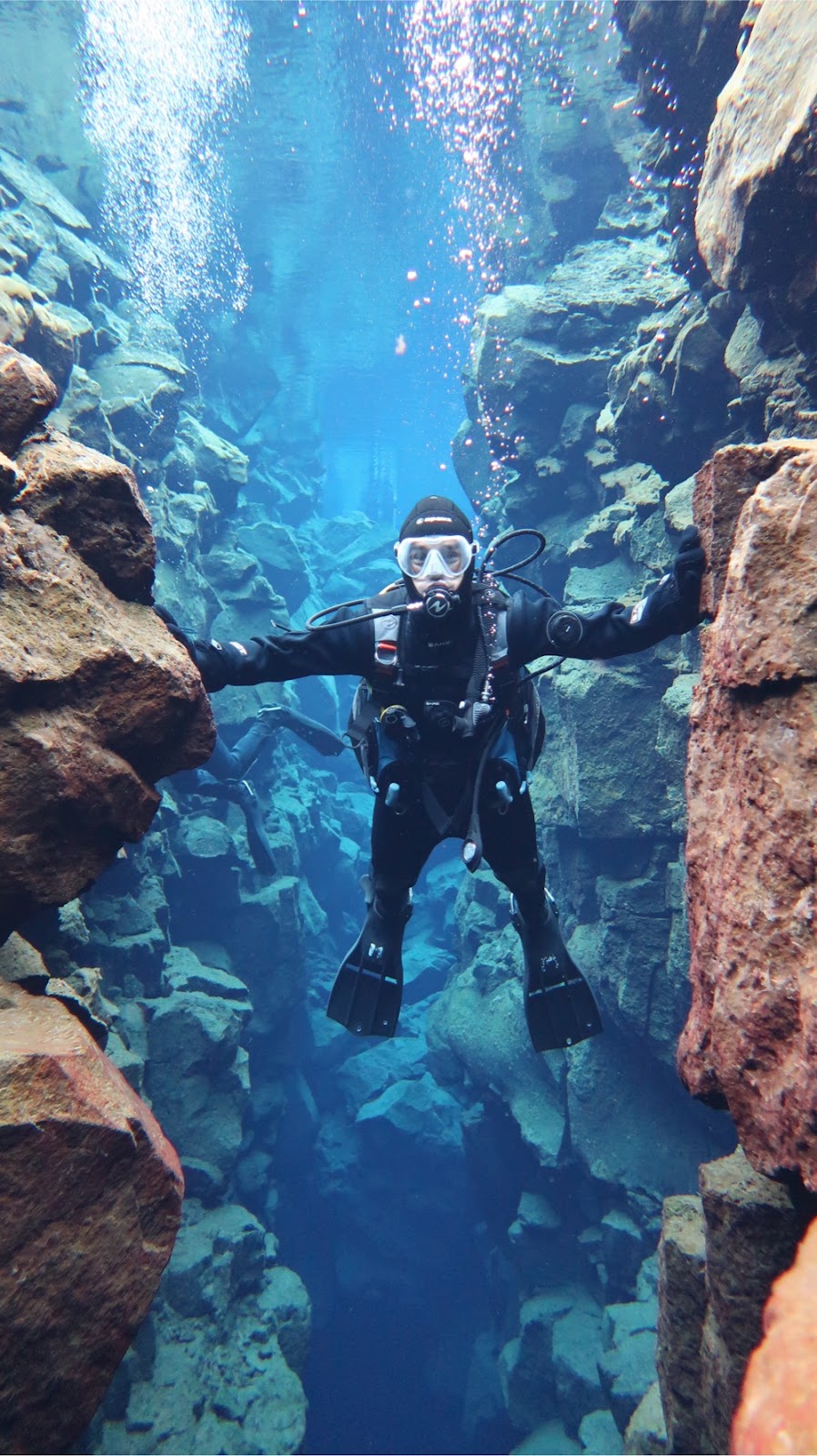 Next morning was bucket-list time: scuba diving between the Eurasian and North American tectonic plates at Silfra 🤿. The 4°C water and clunky dry suit weren’t exactly comfortable, but touching both plates while floating in crystal-clear 100m visibility was unreal. Afterwards we explored Þingvellir National Park, geysers, and the Kerið crater before the rain caught us and we swapped hiking boots for the Perlan museum - lava and aurora shows, an ice cave, and city views from the observatory - followed by pizza and G&Ts at Andrius’.